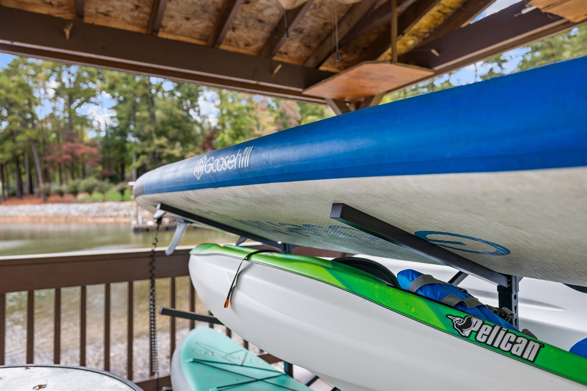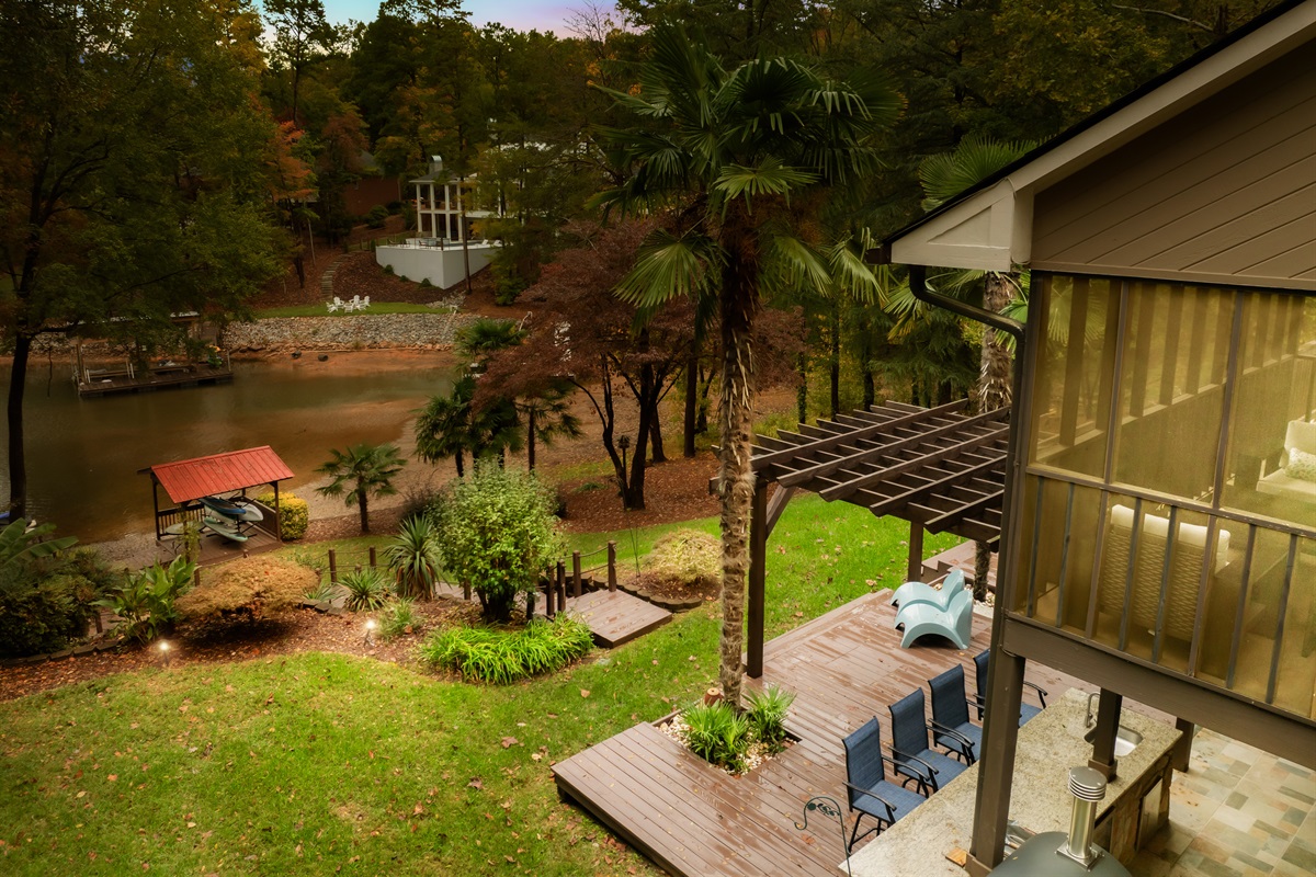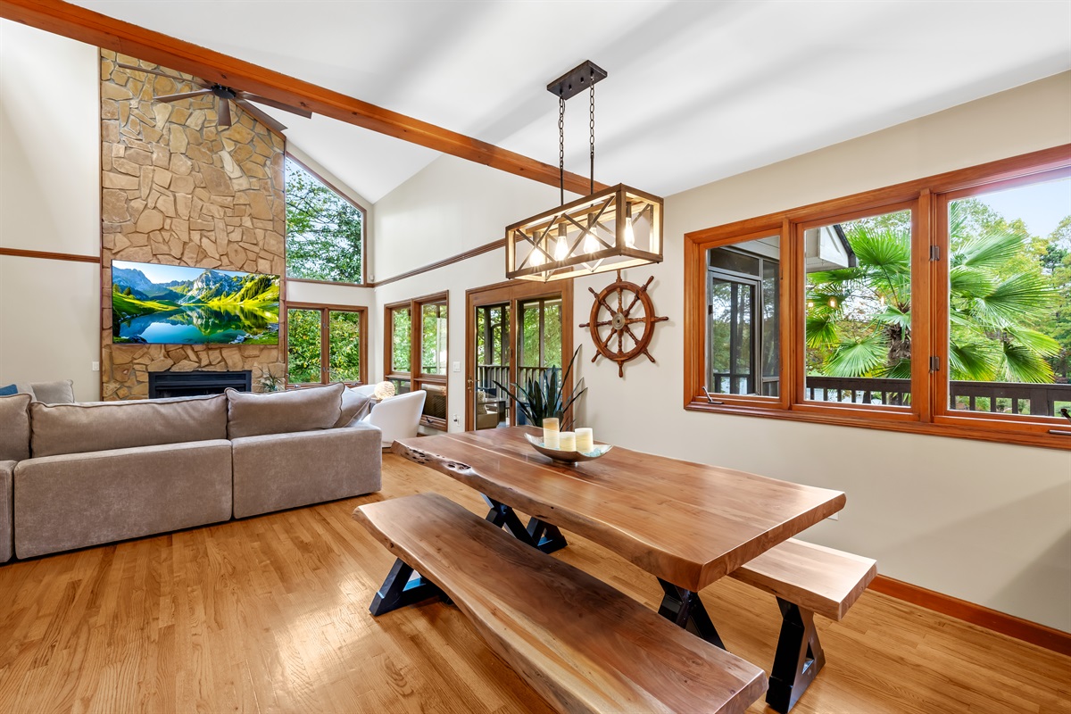 Enjoy lake access from your private dock, complete with a gentle shore entry for swimming or launching the kayaks and paddleboards provided. The screened-in porch off the living room is the perfect spot for coffee at sunrise or a quiet evening under the string lights.