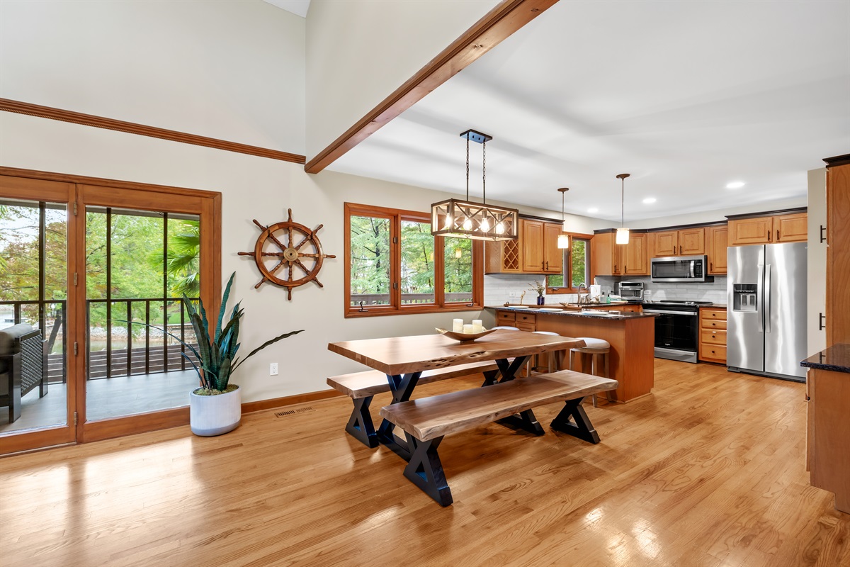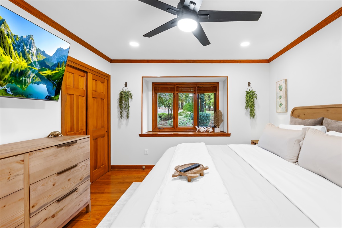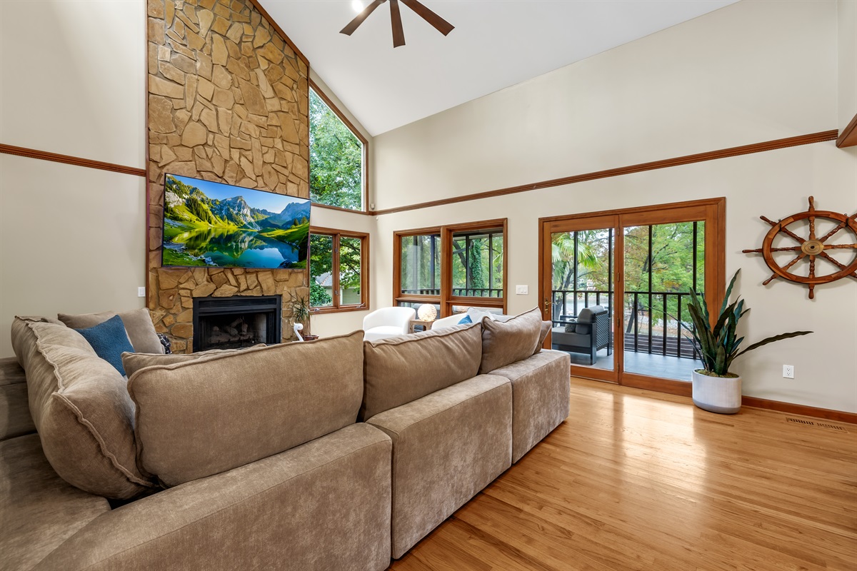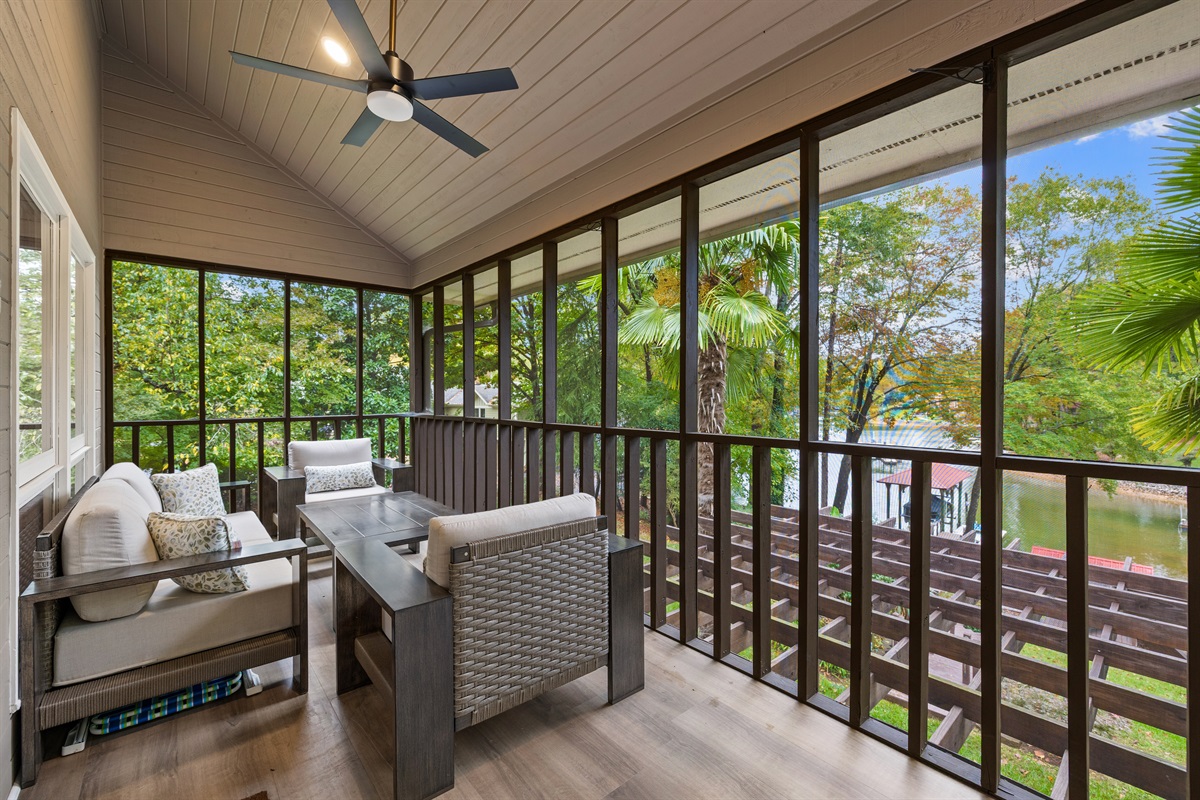 Enjoy lake access from your private dock, complete with a gentle shore entry for swimming or launching the kayaks and paddleboards provided. The screened-in porch off the living room is the perfect spot for coffee at sunrise or a quiet evening under the string lights.
